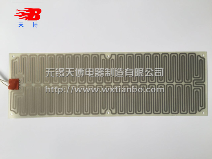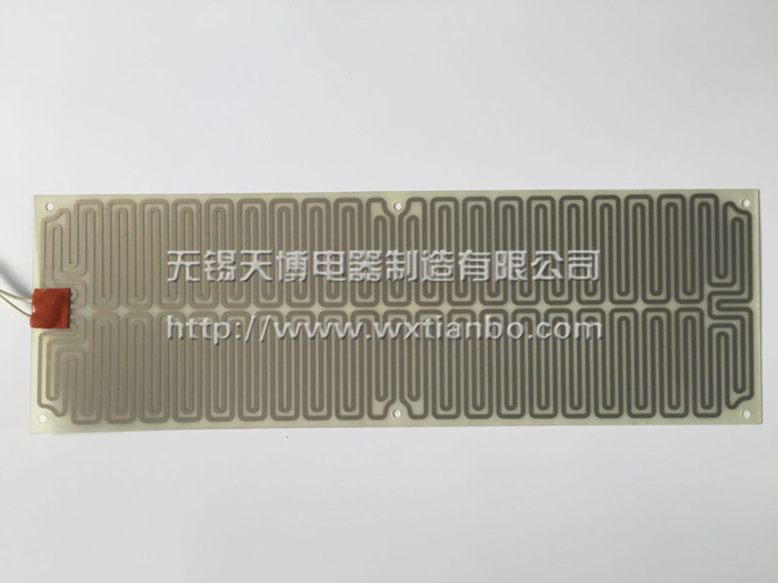 環氧樹脂加熱板,發熱部份為鎳鉻合金蝕刻發熱片、鐵鉻合金蝕刻發熱片,特殊材料需要定制,優點是:薄,耐磨,硬度高,絕緣性強,發熱均勻,穩定,平整,溫差極小。在空間狹小或者要求重量較輕,電熱片暴露于真空、油類或者化學品的應用環境下,環氧樹脂加熱片是理想之選。